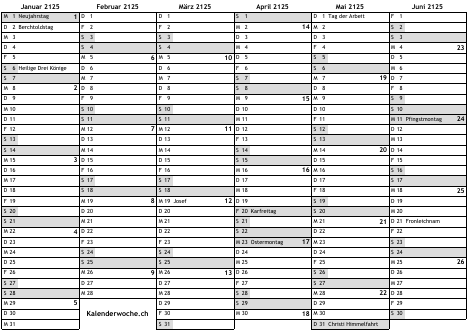 Kalender 2125