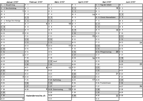 Kalender 2157