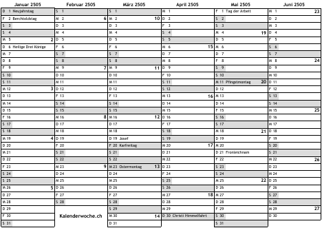 Kalender 2505