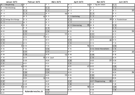 Kalender 2672